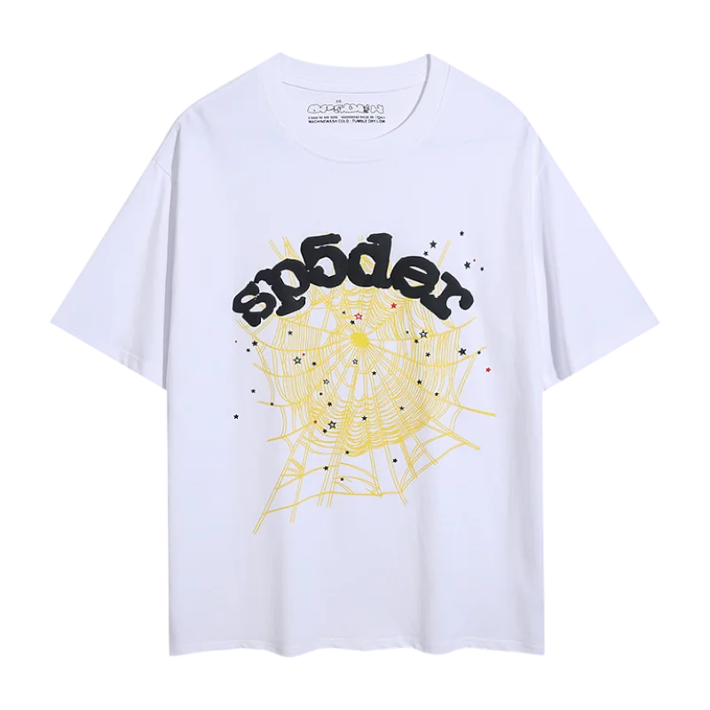- Iconic Web Design:Â The signature Sp5der web design, inspired by the legendary hero, takes center stage, adding a touch of dynamic energy to the shirt.